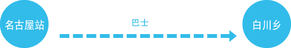 自“东京”、“大坂(京都)”、“名古屋”、“高山”搭乘公共交通工具的游客,请参考以下交通方式前往。